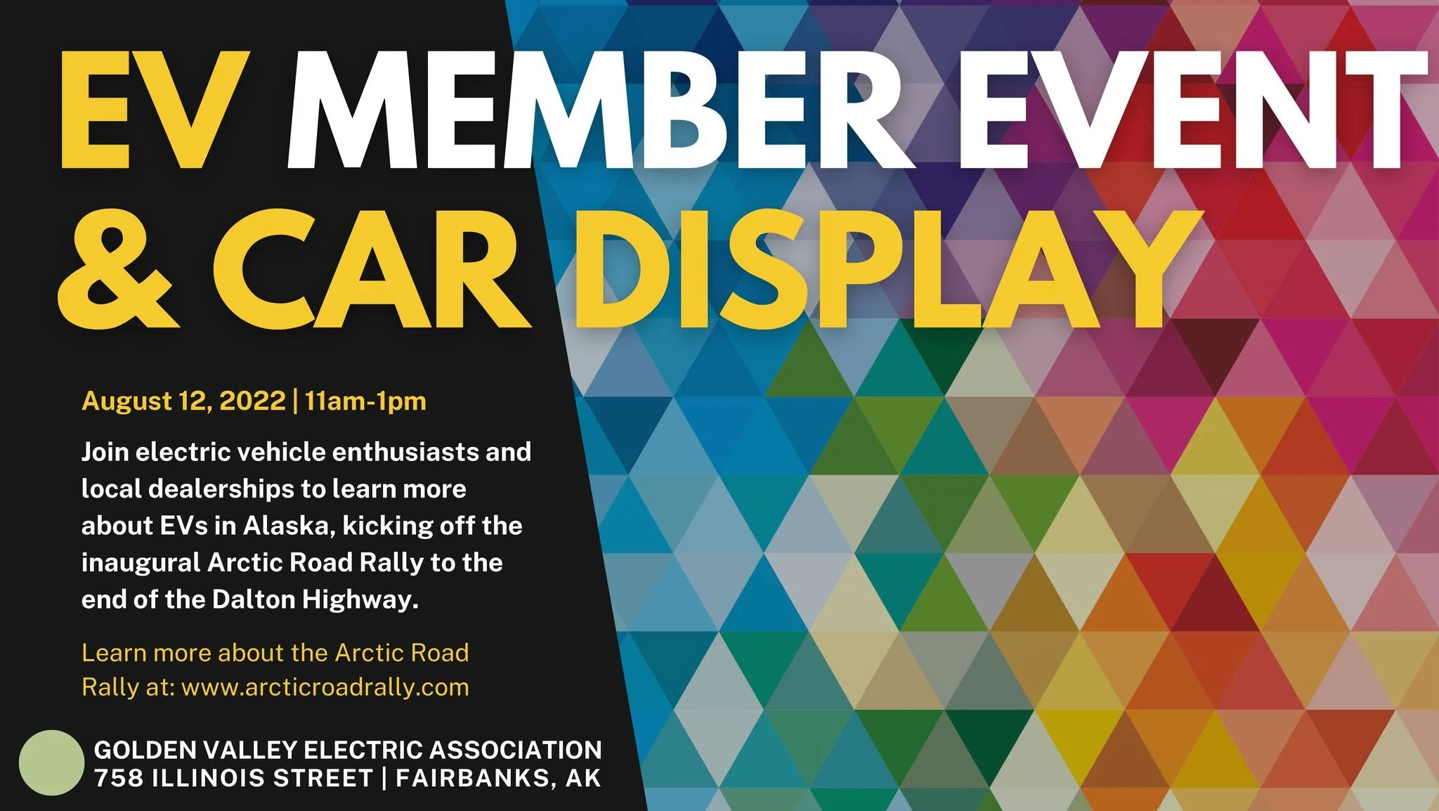 Join Golden Valley Electric Association for a special member event and electric vehicle show to kick off the 2022 Arctic Road Rally in Fairbanks. Connect with electric vehicle enthusiasts and local dealerships and learn more about EVs in Alaska — mark your calendars for Aug. 12 from 11 a.m.-1 p.m. Click here for details.